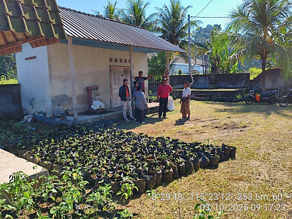 Lalu kegiatan berlanjut pada tanggal 2-3 Oktober 2025 dengan dilaksanakannya kegiatan monitoring dan evaluasi (Monev) secara intensif. Kegiatan monitoring ini bertujuan untuk mengidentifikasi potensi kendala di lapangan sejak dini, seperti serangan hama atau penyakit, serta memastikan petani mengaplikasikan praktik pertanian yang baik (Good Agricultural Practices – GAP). Pendampingan ini diharapkan mampu menjaga tingkat keberhasilan tumbuh bibit hingga masa panen, yang pada akhirnya akan meningkatkan kesejahteraan petani. Diharapkan, melalui program P2B ini, ketersediaan pasokan cabai di Kabupaten Klungkung dapat terjaga, sehingga turut membantu stabilitas harga komoditas penting ini di tingkat konsumen.