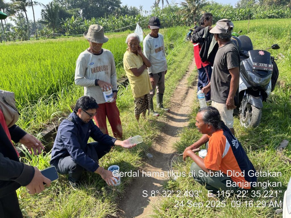 Banjarangkan, 24 September 2025 – Petani di Subak Dlod Getakan, Desa Getakan, Kecamatan Banjarangkan dan POPT dan Penyuluh Dinas Pertanian, melancarkan Gerakan Pengendalian Organisme Pengganggu Tanaman (OPT) secara serentak pada Rabu (24/9/2025). Kegiatan ini dipusatkan pada upaya menekan populasi hama tikus yang mengancam areal persawahan.