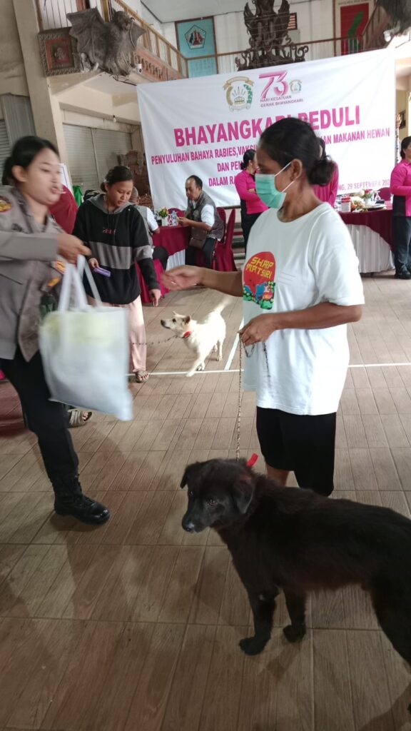 - Pembagian Makanan Hewan: Sebagai bentuk kepedulian terhadap kesejahteraan hewan, Bhayangkari juga membagikan paket makanan hewan. Hal ini bertujuan mendorong masyarakat untuk merawat hewan peliharaannya dengan baik, yang secara tidak langsung mendukung upaya pencegahan Rabies.