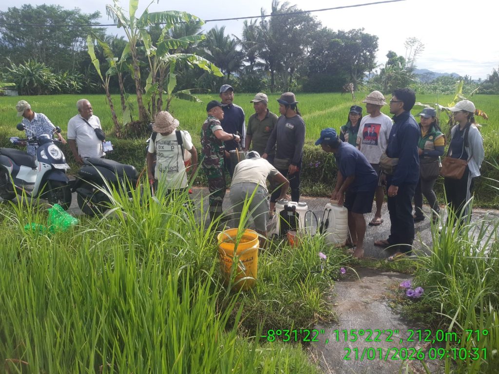 Banjarangkan, 21 Januari 2025 – Dalam upaya menjaga ketahanan pangan dan mengamankan produksi padi dari ancaman gagal panen, para petani di Subak Dlod Bakas melaksanakan Gerakan Pengendalian (Gerdal) Penyakit Kresek secara terpadu. Kegiatan ini dilaksanakan sebagai respon cepat terhadap adanya serangan penyakit yang mulai mengancam lahan pertanian setempat.